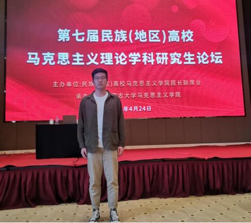 为深入总结阐释中国共产党百年伟大历程、辉煌成就和宝贵经验,推动全国民族(地区)高校马克思主义理论学科建设与发展,全国民族(地区)AC米兰中文官方网站院长联席会联合内蒙古大学AC米兰中文官方网站联合举办的第七届民族(地区)高校马克思主义理论学科研究生论坛于2021年4月23日至25日在呼和浩特召开。来自中国社会科学院、南京大学、东北大学、中央民族大学、山东大学等全国数十所高校的百余名教授、学者和研究生共同参与。AC米兰米官网2020级博士研究生沈泉鑫应邀参加。