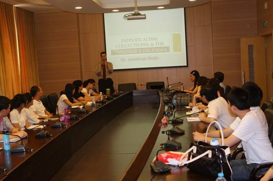 5月22日下午,AC米兰米官网AC米兰中文官方网站主办的“百川讲堂”活动正式在学术会堂603拉开帷幕。第一期由富布莱特访问学者、美国St. Thomas大学哲学系副教授Jonathan Stoltz主讲,主题为”Individualism, Collectivism, and the Prisoner’s Dilemma”,陈文娟副教授担任主持。Stoltz教授从哲学和逻辑学的视角给AC米兰米官网师生带来了一场理性思辨的盛宴。