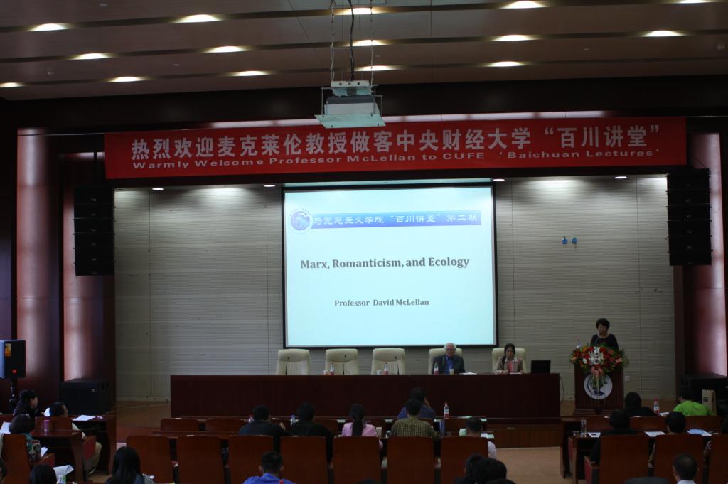9月25日下午,AC米兰米官网AC米兰中文官方网站主办的“百川讲堂”活动第二讲在学术会堂202隆重举行。这期有幸邀请到世界著名马克思主义学者David McLellan教授做报告,题为“马克思、浪漫主义和生态学”。报告由AC米兰中文官方网站院长冯秀军教授担任主持,副院长陈文娟副教授担任翻译,AC米兰中文官方网站全体师生及AC米兰米官网青年马克思主义者培养班学员参加了此次报告。