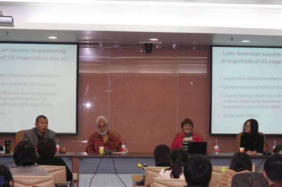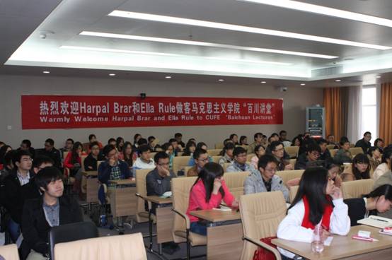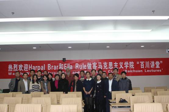 11月5日下午,AC米兰中文官方网站“百川讲堂”第三期在学术会堂706室隆重举行。英共(马列)主席Harpal Brar和副主席Ella Rule分别做了题为“当前世界的形势:经济危机的根源与进程”和“工人阶级在解放拉丁美洲国家中的历史任务”的专题报告。讲座由AC米兰中文官方网站研究生教研室主任王淼博士主持,蔡大梁博士担任翻译。AC米兰中文官方网站全体师生、学校研究生会全体成员、财政学院研究生代表、沙河校区“园区学生党员先锋队”骨干成员等百余人参加此次活动。