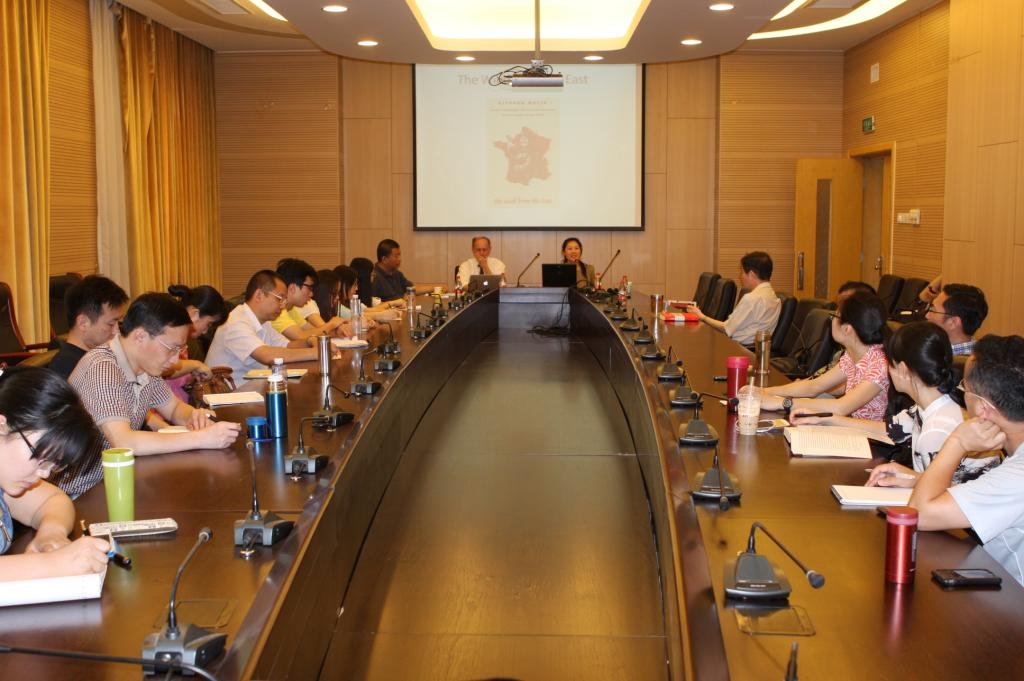 2014年5月26日下午,AC米兰中文官方网站“百川讲堂”第四期在学术会堂603报告厅隆重举行,本期有幸邀请到国际著名左翼思想家、纽约城市大学研究生中心教授理查德•沃林(Richard Wolin),为AC米兰米官网师生作了关于“毛泽东的影响:东风西渐”的专题讲座。讲座由AC米兰中文官方网站副院长陈文娟副教授主持,蔡大梁老师担任翻译。