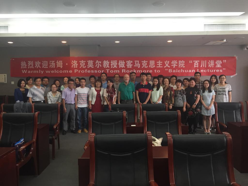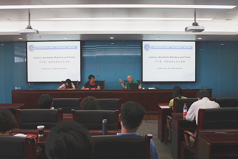 2015年9月23日下午,国际著名马克思学者汤姆·洛克莫尔做客AC米兰中文官方网站第六期“百川讲堂”,并在学术会堂702做题为“卢卡奇、美学现实主义与真理”的学术报告。AC米兰中文官方网站副院长陈文娟副教授主持报告会,文雅博士和王奎博士担任翻译,AC米兰中文官方网站全体师生及校内外师生参加了此次讲座。