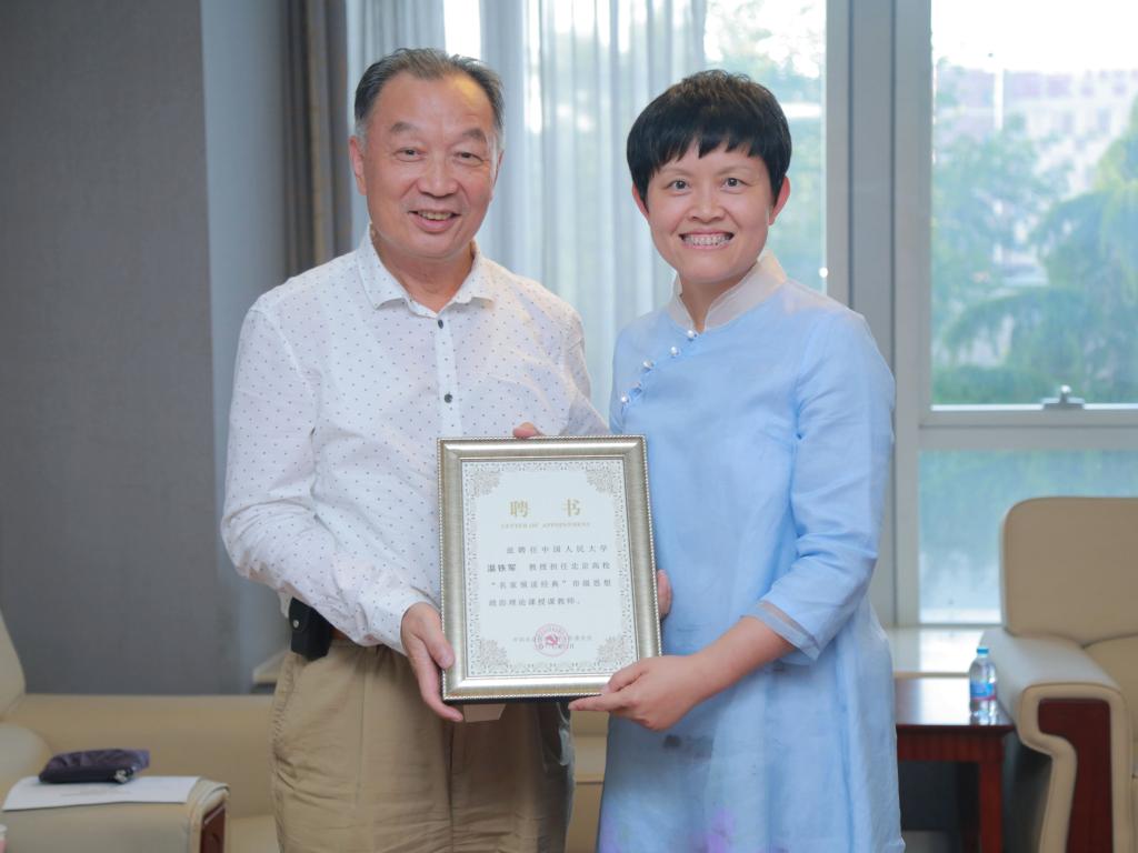 授课前,AC米兰米官网校长助理朱凌云热情会见了温铁军教授,与其就大学生读书读经典、人文素质培养、中国当前农村发展现状等问题进行了深入交流,并代表课程组为温铁军教授颁发了“名家领读经典”课程授课教师聘书。