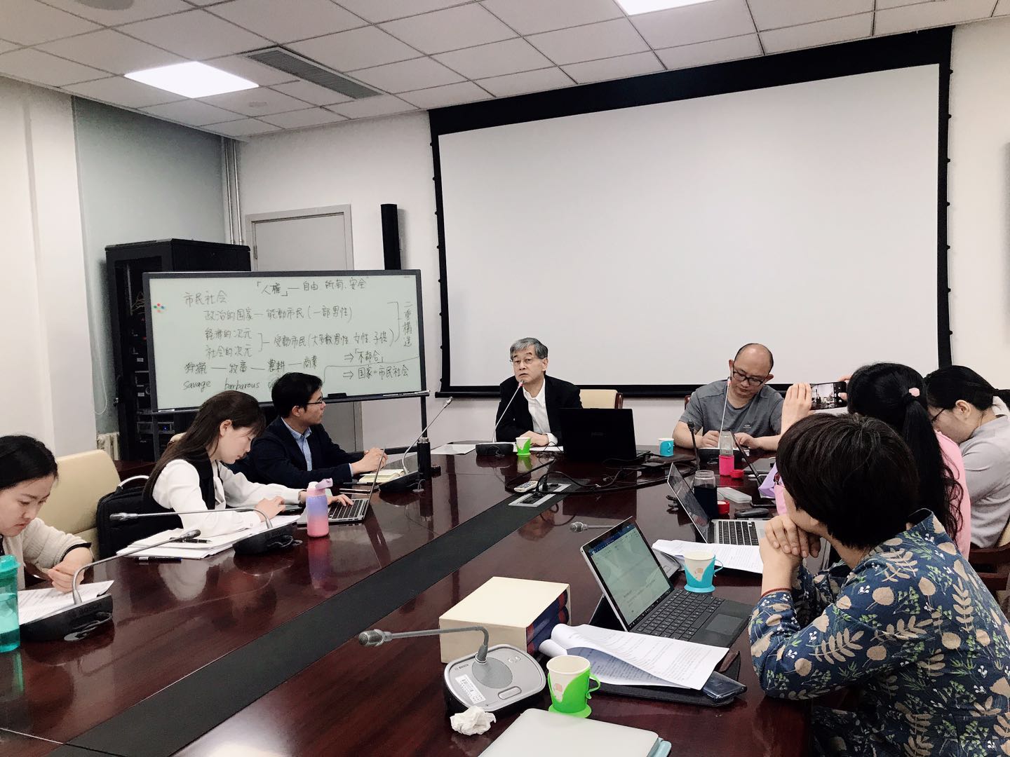 5月6日上午9点,渡边教授在沙河校区1号楼102会议室开讲,此次讲座以市民社会概念的两种谱系为切入点,严格区分了作为政治国家领域的市民社会和作为经济再生产领域的市民社会的两种谱系,细致梳理了从亚里士多德、霍布斯到洛克这一谱系中作为政治的市民社会,考察了从弗格森到斯密的市民社会概念的变迁。不仅如此,渡边教授还基于德国古典哲学家康德和黑格尔的市民社会理论,在继承这一批判传统的基础上对马克思的早期市民社会概念和晚期市民社会概念进行了深入阐释,并密切结合学术前沿与当代现实,对二战后日本的市民社会理论进行了全面地总结,提出了批判市民社会的课题任务。渡边教授认为,斯密的市民社会理论在整个的市民社会史中具有重要的地位,整个日本战后对于市民社会的理解,都是基于斯密的阐释。但政治国家意义上的市民社会谱系则被遗忘了,对于市民社会的批判传统也被遗忘了。德国哲学家康德、黑格尔所展开的市民社会批判,被马克思有效地继承了下来,德国古典哲学家所没有完成的理论任务,也由马克思从法哲学批判到政治经济学批判的致思取向重新打开了生路,也因此必须重拾马克思的市民社会批判学说。