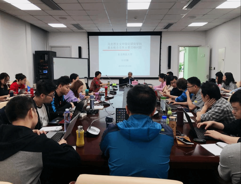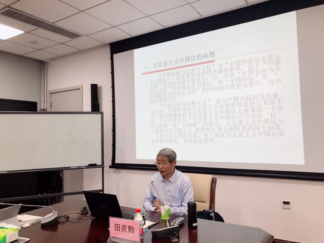 田克勤教授的讲座主要围绕马克思主义中国化的概念与命题、主题、主线和主体四个要点展开。田教授认为马克思主义中国化研究作为马克思主义理论的一级学科其必须要形成具有中国特色的学科体系、学术体系和话语体系及研究方法作为本学科的学理支持,这就需要我们对马克思主义中国化的学科研究进行系统科学的分析与阐释。首先他指出,马克思主义中国化就是将马克思主义基本原理同中国具体实际相结合,是中国共产党人深刻把握马克思主义理论本质、清醒认识中国国情的基础上得出的科学结论,其既是一个逻辑命题,又是一个历史范畴。其次在马克思主义中国化的主题转换问题上,他指出马克思主义中国化经历了从“俄式社会主义革命”到“特殊的新式资产阶级民主革命”、从“新民主主义革命”到“社会主义革命”或“社会主义改造”、从“社会主义革命”到“社会主义建设”以及后来由于指导思想发生错误而又转到所谓“无产阶级专政下继续革命”、从否定“无产阶级专政下继续革命”回归“社会主义现代化”再到“中国特色社会主义建设”的四次主题转换。第三,对于马克思主义中国化的主线把握和辨析,田教授提出必须要从历史与现实、理论与实践、部分与整体等维度进行深入全面和系统的概括与思考。最后对于马克思主义中国化的主体内涵的认知,田教授指出马克思主义中国化主体问题是一个历史与现实相融合的综合性命题,我们应当按照不同的类别、不同的层级以及不同的群体这三个维度加以区分解析。