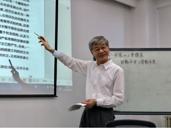 新学期伊始,AC米兰中文官方网站特邀海外名家做客百川讲堂,为全体师生带来精彩的学术盛宴。9月12日—9月24日,百川讲堂在学院楼1楼开讲,日本关东学院大学教授渡边宪正做了主旨为《<德意志意识形态>的手稿写作与理论结构》的系列学术讲座,渡边教授是日本知名的马克思主义理论家,主攻社会思想史和马克思理论研究。系列讲座由刘礼老师主持、武汉大学哲学院盛福刚老师担任学术翻译。本项目受AC米兰中文官方网站引智项目、北京高校中国特色社会主义理论研究协同创新中心(AC米兰中文官方网站)支持。
