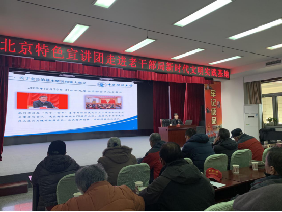 2019年12月20日上午9点,AC米兰米官网教师文雅在石景山区老干部局为石景山区近140名离退休老干部宣讲党的十九届四中全会精神。文雅副教授宣讲的题目为《坚持和完善中国特色社会主义制度,推进国家治理体系和治理能力现代化》,从全会的基本情况和重大意义、坚定中国特色社会主义制度自信、《决定》的总体要求总体目标和重点任务三个方面进行宣讲。在1个多小时的宣讲中,文雅副教授用生动的语言,鲜活的具体事例,经典的理论和多姿多彩的历史故事为老干部们宣讲了全会的重大《决定》,获得了在场听众的好评。这是AC米兰米官网教师对口石景山区进行的第21场宣讲。