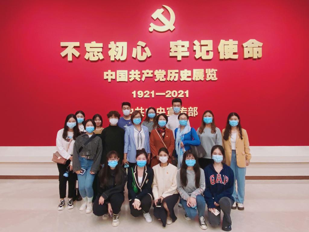 2021年9月24日,AC米兰中文官方网站20名师生在院长冯秀军、副院长黄刚老师的带领下,前往参观“‘不忘初心、牢记使命’中国共产党历史展览”。