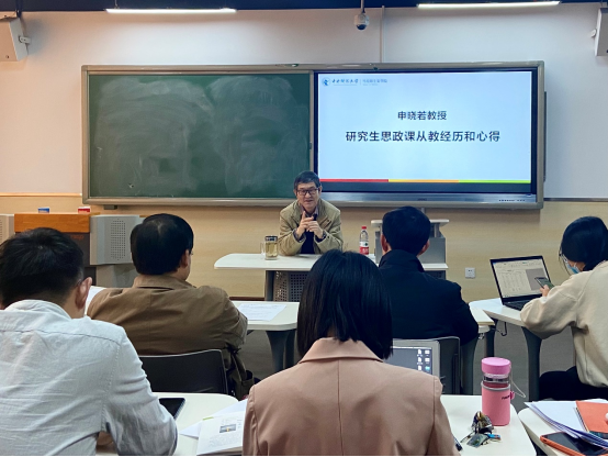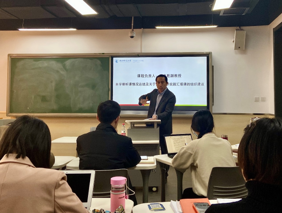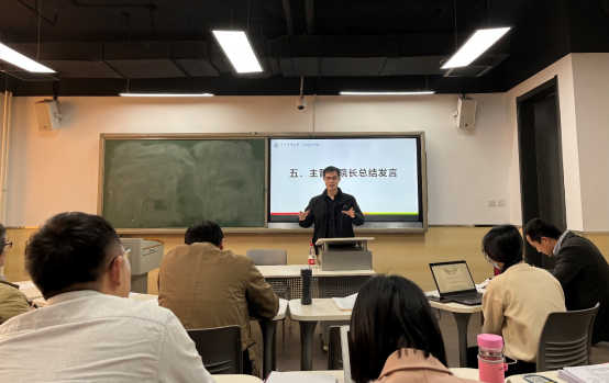 备课会第三阶段,张忠胜副教授作为课程负责人以“本学期听课情况总结和关于最后一节实践汇报课的组织建议”为题,作了发言。首先,张老师结合对本学期十个专题中六个专题的实际听课情况,介绍到,在本课程课堂教学中,老师们讲法各有特点、十分用心,同时,课堂秩序良好、学生精力较集中,但也较普遍地存在一定问题,比如教学内容与教材契合程度问题、教学中案例或视频的时代性及运用效果问题等。第二,关于最后一节实践汇报课的组织建议,张忠胜老师结合本门思政课的教学目的,在充分考虑学生和老师反馈问题的情况下,创新性探索“减负增效”的考核方式和考核内容改革,在完全遵循研究生院相关要求、备案教学计划和学期初开课通知的基础上,就本学期的考核计划作了新的明确解释和介绍,力求解决长期以来学生在思政课期末考核中存在的“开卷盲目摘抄、闭卷突击猛背”等违背培养目标和教学规律的现象,同时为后续推动本门思政课建设内涵式发展创造空间。
