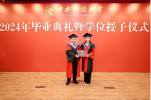 首先,黄刚院长以“常修为学、为事、为人之道”为毕业典礼致辞。黄刚院长向32名硕士研究生和14名博士研究生的顺利毕业表示最衷心的祝贺,向老师们和亲友们长期以来的默默奉献和大力支持表示最崇高的敬意。在致辞中,黄刚院长与毕业生们分享了孔子与其弟子颜回之间的故事,鼓励大家从中华优秀传统文化中汲取为学、为事、为人之道:一是常修“闻一以知十”的为学之道,不断提升适应时代、应对变革的学习能力和创新精神,努力做到“青出于蓝而胜于蓝”;二是常修“不迁怒,不贰过”的为事之道,用优秀传统文化正心明德,努力做到“怒于甲者,不移于乙;过于前者,不复于后”;三是常修“不改其乐”的为人之道,无论顺境逆境,都能以道为乐、理想坚定,努力做到“见其大而忘其小”。黄刚院长最后寄语全体毕业生,希望大家时刻谨记习近平总书记对青年的殷殷嘱托,立志做有理想、敢担当、能吃苦、肯奋斗的新时代好青年,怀抱梦想又脚踏实地,敢想敢为又善作善成,在无比广阔的新时代舞台上施展才干,在强国建设的新征程上勇毅前行,为实现中华民族伟大复兴的中国梦做出中财大马院人应有的、更多的贡献!