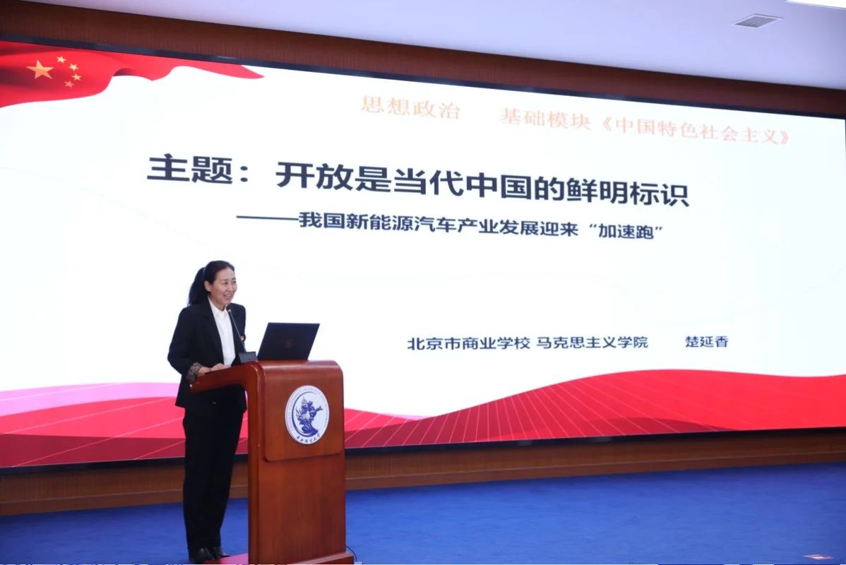 北京市商业学校AC米兰中文官方网站思政课教师楚延香以《开放是当代中国的鲜明标识——新能源汽车迎来“加速跑”》为题,围绕“学习《习近平经济文选》第一卷,一体推进习近平经济思想融入思政课教学”这一主题,从教学整体设计、教学实施过程、教学反思改进三个维度展开教学分享。教学设计上,秉持以教师为主导、学生为主体的理念,通过“议题三线六环节”有序推进教学;在政治认同方面,引导学生运用马克思主义立场观点,探寻“对外开放背景下中国新能源汽车产业的发展之路”,从而理解开放是国家繁荣发展的必由之路,增进对我国对外开放基本国策的认同与拥护;在职业精神培养上,组织学生对“新能源汽车产业自立自强VS对外开放,谁更重要”话题展开辩论,使其正确应对经济全球化竞争中的机遇挑战,坚定学好技术技能、报效国家的职业理想信念,培育不断创新、追求卓越的工匠精神;在公共参与能力提升上,借助各类学生活动,提高学生解决实际问题的能力,使其能够有序参与公共事务,勇于担当社会责任。