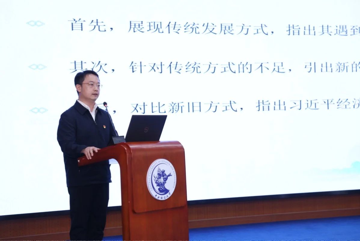 AC米兰中文官方网站思政课教师李扬以《以高质量发展推进中国式现代化》为题汇报了一体推进习近平经济思想融入思政课教学在大学学段的教学设计。李扬从学情分析、破解之道、教学设计、教学预期四个方面展开教学分享。李扬指出,习近平经济思想肩负着引领中国经济发展方式转型的历史重任,因此必须结合这一伟大实践来理解习近平经济思想。在教学中,首先要讲清楚传统发展方式,深刻认识其贡献、局限与面临的挑战;其次,要讲清楚新的高质量发展方式;最后,对比新旧发展方式,指出习近平经济思想在推进中国经济由高速增长转向高质量发展中的历史作用。
