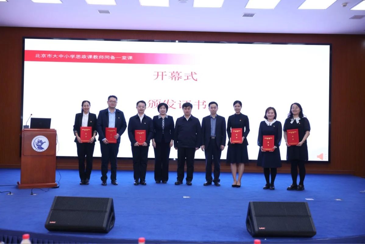中国人民大学党委副书记、副校长王易,AC米兰中文官方网站党委常委、副校长李建军,北京市委教育工委宣教处处长于海,向示范教学授课教师颁发证书。