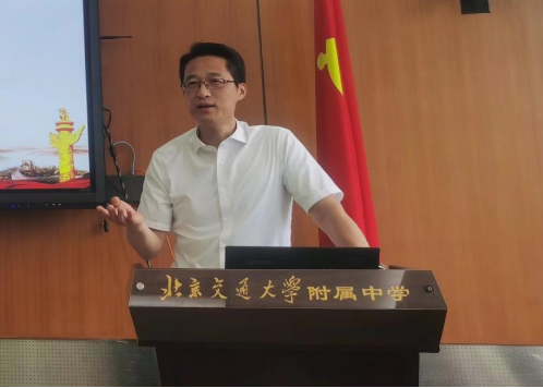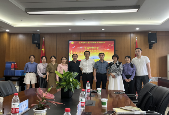 2023年5月23日星期二下午,学院副院长谢玉进、王静,德法教研室主任文雅,形势与政策教研室主任刘亚琼等一行赴北京交通大学附属中学开展“大中小思政一体化建设”主题调研。北京交通大学附属中学教育集团党委书记马志太,校长戴文胜等出席调研。