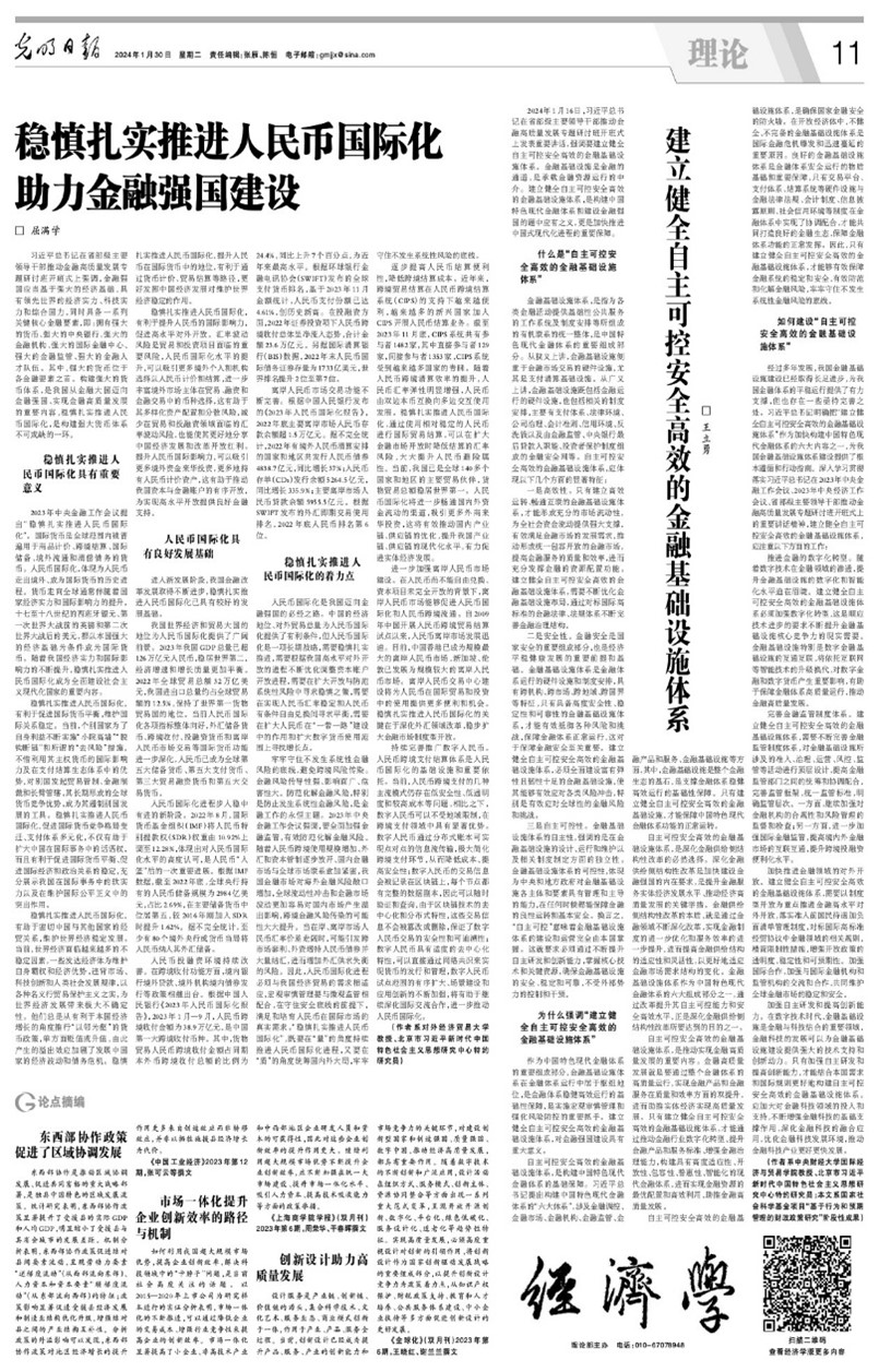 1月30日,《光明日报》理论版刊发AC米兰米官网科研处处长王立勇教授署名文章---《建立健全自主可控安全高效的金融基础设施体系》。