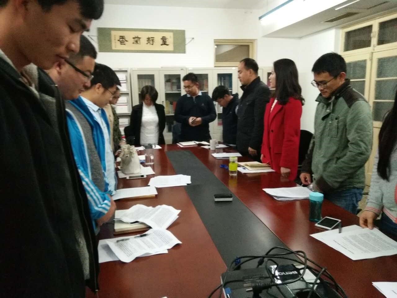 活动当日恰逢长征胜利八十周年纪念日,主持人梅晓丽提议在活动开始之前全体起立为长征过程中牺牲的各位英雄默哀一分钟。接下来,梅晓丽介绍了活动的三项内容:欢迎博士和硕士新生的成为研读社会员、分享《胡锦涛文选》的学习心得、组织换届选举。