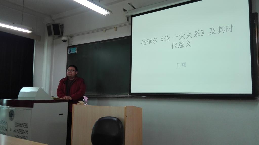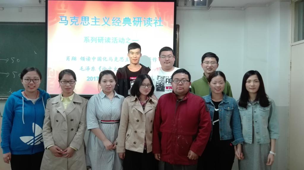 2017年4月14日下午14:00,马克思主义经典研读社在校本部主教学楼509教室成功举办了2017年系列活动之一:肖翔副教授领读毛泽东著作《论十大关系》。马克思主义经典研读社部分社员参加了本次研读活动。
