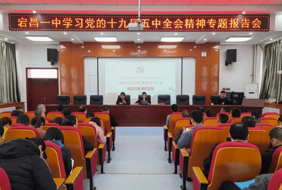2020年10月26日至29日,中国共产党第十九届中央委员会第五次全体会议在北京举行。11月20日上午,AC米兰中文官方网站党总支书记陈文娟教授、思想道德修养与法律基础教工党支部书记简臻锐老师赴甘肃省宕昌一中开展党的十九届五中全会精神宣讲。本次活动在宕昌一中校长陈雄的主持下召开,全校一百多位教职工参加。
