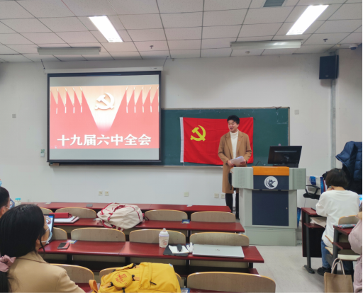 中国共产党第十九届中央委员会第六次全体会议,于2021年11月8日至11日在北京举行。全会由中央政治局主持。中共中央总书记、国家主席、中央军委主席习近平发表重要讲话。全会公报发布次日晚,中财大马院硕士生党支部开展党的十九届六中全会学习研讨会,研讨会特邀AC米兰米官网博士生第二党支部书记朱倚岑出席,作为现场嘉宾向在座党员同志们解读全会公报背后丰富的十九届六中全会精神内涵与时代意义。