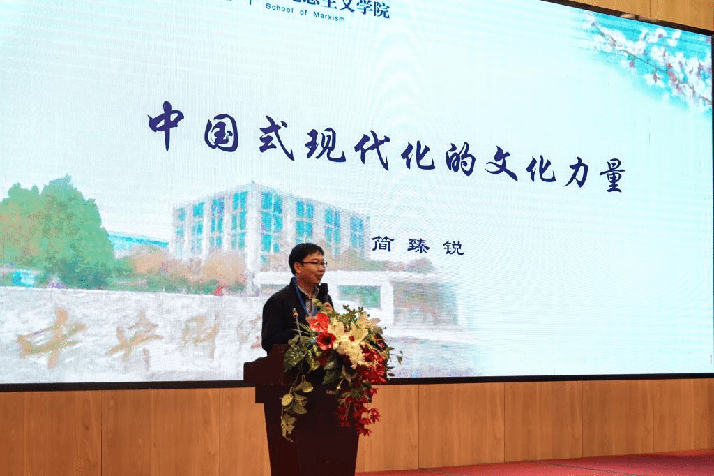 AC米兰米官网教师简臻锐副教授应邀参加本次活动,并作题为《中国式现代化的文化力量》专题报告。报告以中国式现代化的提出及其文化命题为导入,重点解答了如何从中国式现代化的“中国特色”探析其所蕴含的文化力量,主要包括以下五个方面:从理想信念看实现人口规模巨大现代化的文化引领力,从核心价值观看实现全体人民共同富裕的文化凝聚力,从中国精神看推动物质文明与精神文明协调发展的文化内生力,从整体观念看促进人与自然和谐共生的文化涵养力,从道德追求看坚定不移走和平发展道路的文化包容力。